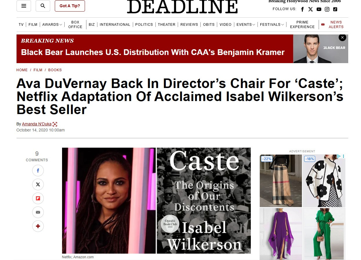 I still remember when the news broke: Ava DuVernay would be adapting Caste for the screen. My jaw dropped. Two women I deeply admire; one who investigates power structures with a journalist’s lens, the other who directs with purpose and emotional clarity, coming together to tell the truth out loud. Joining forces to explore the most entrenched hierarchy in American life.